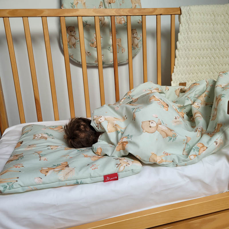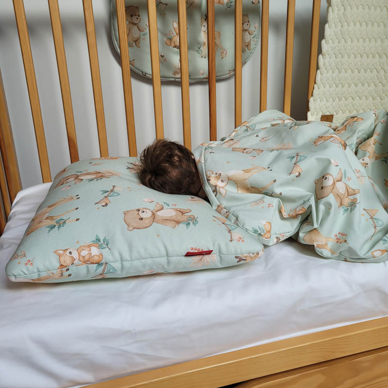 - kołderka 90x120 cm (+/- 3 cm) i poduszka 40x50 cm (+/- 3 cm)