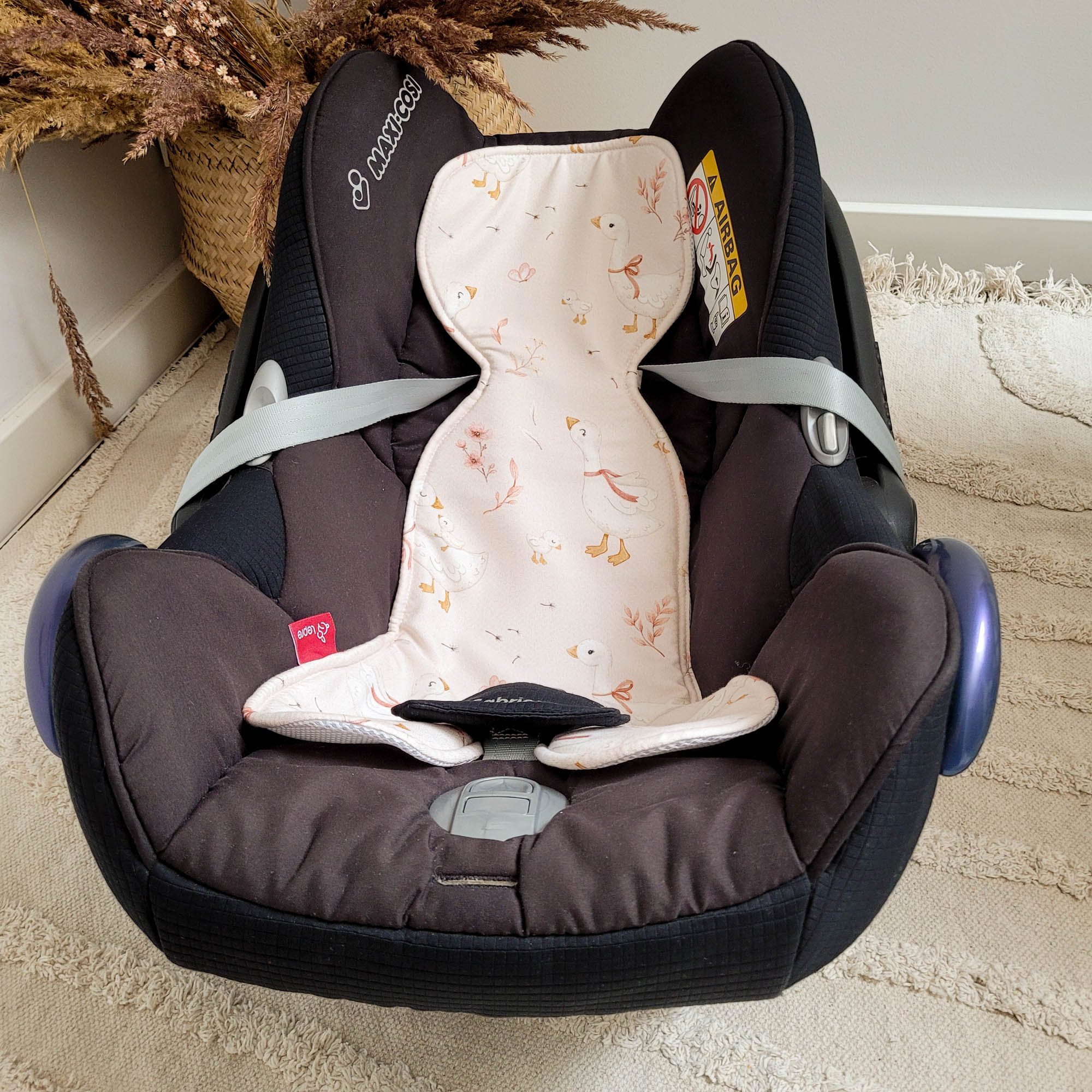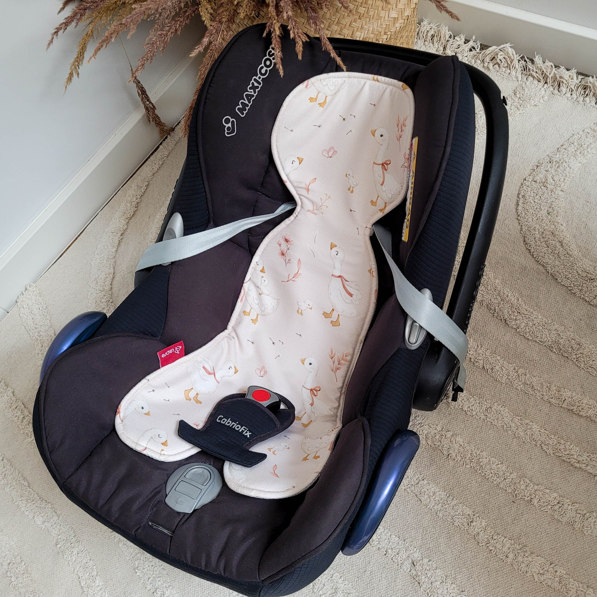 Wkładka pasuje do większości fotelików samochodowych i łatwo ją zamontować oraz zdjąć.